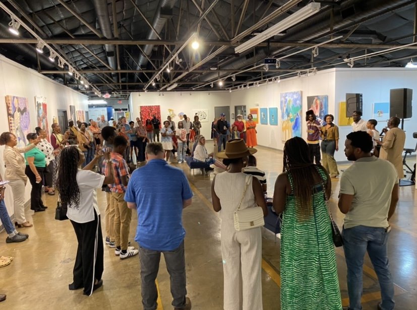 Curated by Concord-based artist and computer-systems engineer, Dimeji Onafuwa, this Group Exhibition of professional African and African-American artists presents a visual identity characterized by bold, saturated colors inspired by West African fabrics, pop art, and Afrofuturism; Dynamic brushstroke motifs and graphic overlays; and use of grainy textures and handwritten script fonts. Don’t miss these bold and unique artworks! The Opening Reception on Saturday, August 2 will feature presentations by several of the participating artists, with additional events offered over the 2-month Exhibition Period.