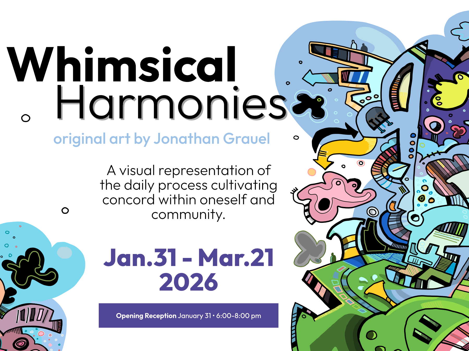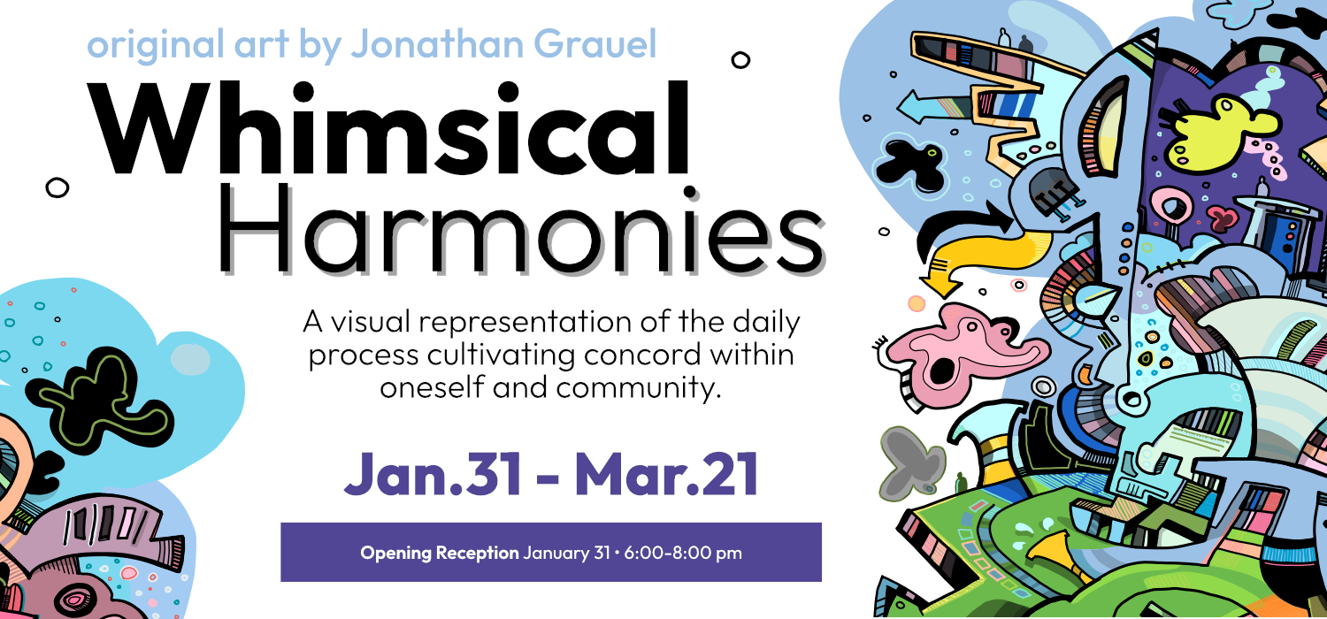 In 2024-25 Jonathan completed his 98-foot mural, “Whimsical Harmony” on the exterior wall of our Original Clearwell building (which is next up, for Renovation!) - a project funded by a grant from Republic Services Foundation’s “Neighborhood Promises” grant program and administered by Rebuilding Together of Greater Charlotte. Grauel was inspired by many local landmarks and community members as he explored the area. He populated the mural with several of them, and continues the theme of communities cultivating concord, in this solo exhibition of paintings and 3-D works.